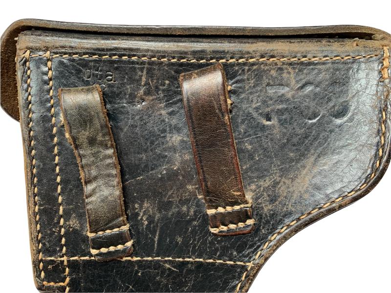 In nice condition a WH (Heer) / Waffen-SS P38 Leather Holster which is nicely factory code marked 'dta' and dated 1942, also the WaA stamp is still visible.