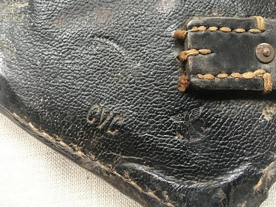 This is a black pressed cardboard construction which is marked with the maker's code ''CVC" (Koffer- und Lederwarenfabrik) and the waffenamt.