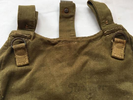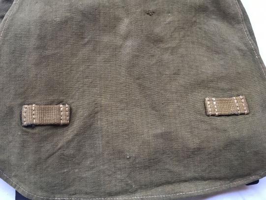 In nice worn conditiom a WH (Heer) M31 Tropical Bread Bag. The breadbag has the nice green colour as it should be and is reinforced with webbing parts, also it is nicely named!
