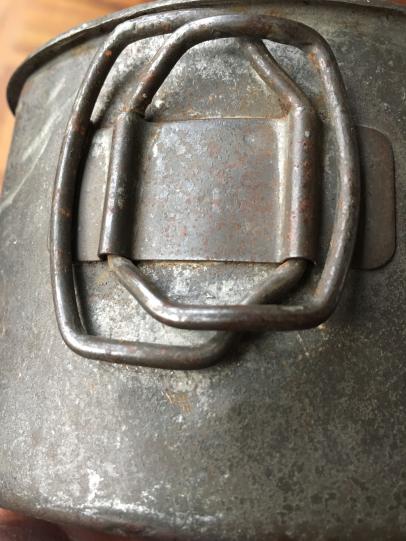 The Canteen and Cup are galvanized, which was made by the Dutch factory 'Verenigde Blik Fabrieken'.