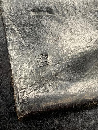 In very nice condition a K98 Rifle Grenade Launcher Leather Pouch, which is nicely factory code marked 'dkk' and dated '1942’ also WaA stamped.