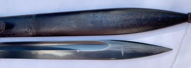 In nice used condition this K98 Combay Bayonet,the scabbard and blade are matching numbers! This blade and scabbard are nicely maker marked 'P.Weyersberg' and dated '1939'.