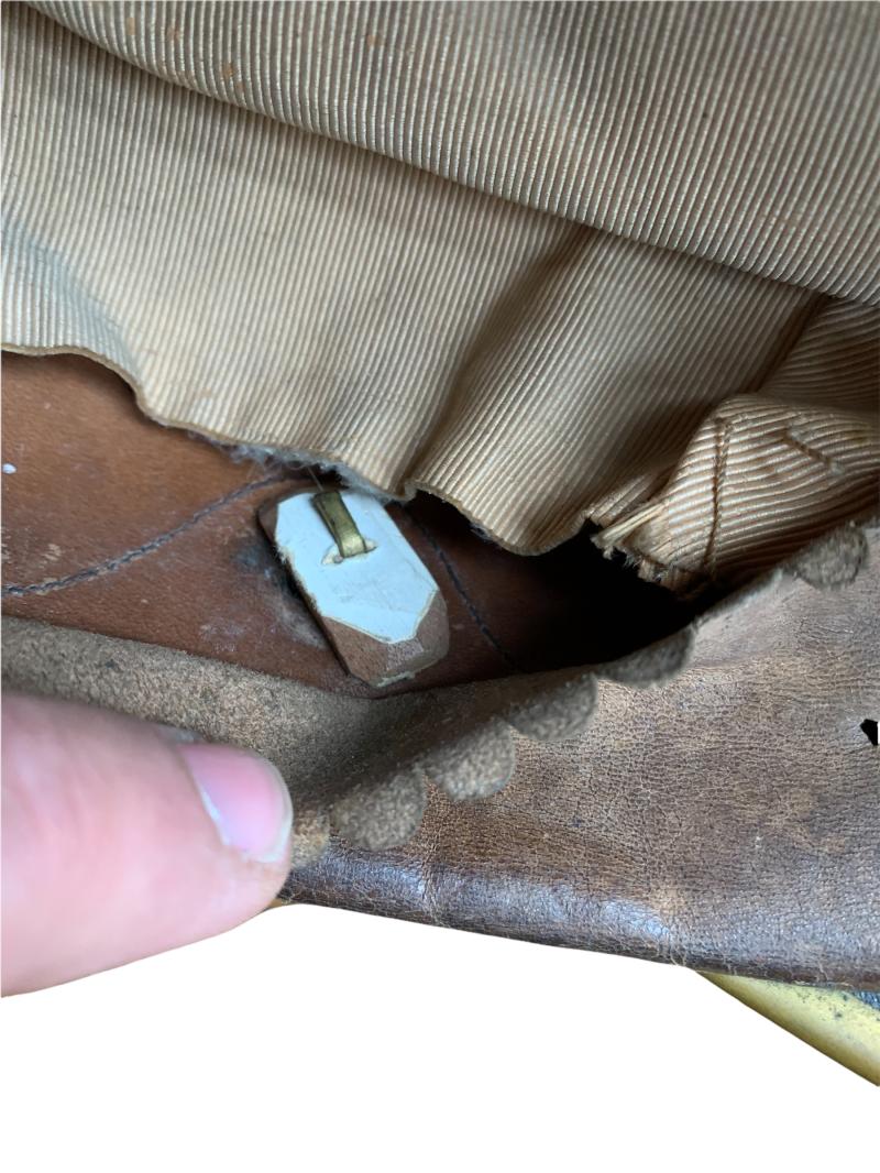 In nice used condition this WW1 Customs Spiked Helmet (Zoll Pickelhaube), which is made of black leather shell construction with a brass Prussian eagle helmet plate.