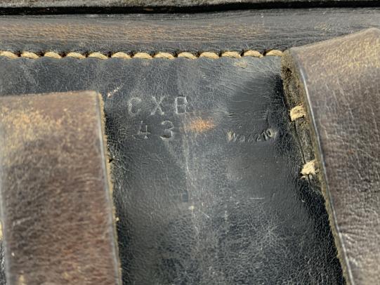 In very nice condition a WH (Heer)/Waffen-SS Leather P38 Holster which is nicely factory code marked 'cxe' and dated '1943' also the WaA stamp is still visible.