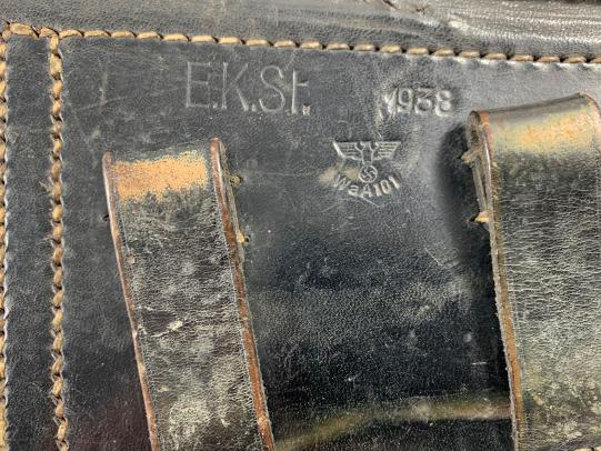 In very nice condition a WH (Heer)/Waffen-SS Leather P08 Holster which is nicely maker marked 'E.K.St.' It was made by (Ehrhardt & Kirsten, Koffer & Lederwarenfabrik, Tauscha-Leipzig) also it is nicely dated '1938' and WaA stamped.
