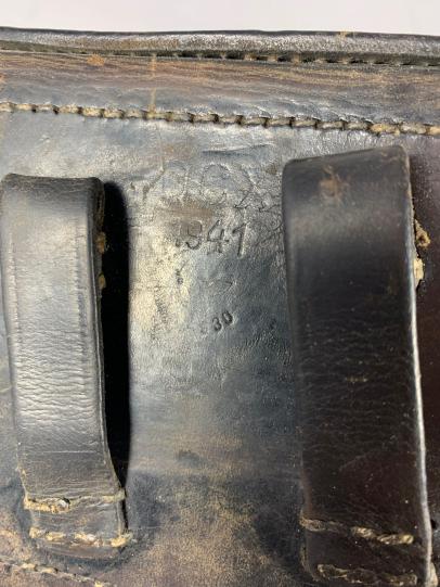 In used condition a WH (Heer)/Waffen-SS Leather P38 Holster which is nicely factory code marked 'gcx' dated '1941' and WaA stamped.