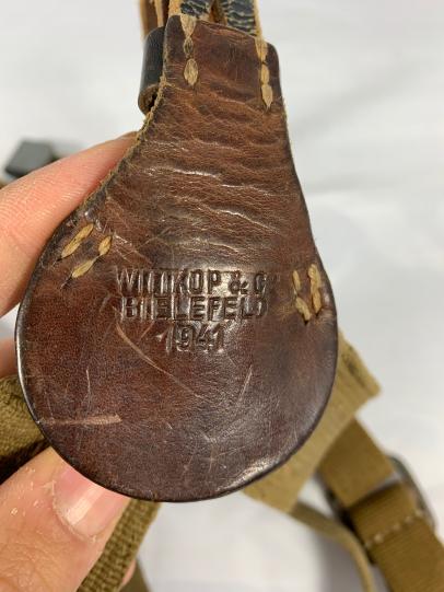 Which comes with an uncommon leather back strap, probably wartime replaced.