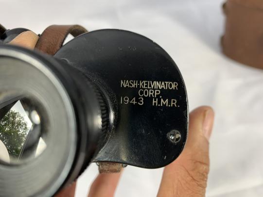 The binoculars are nice nicely maker marked 'Nash-Kelvinator Corp' and dated '1943' the optics are clear and comes with the leather carrying strap.