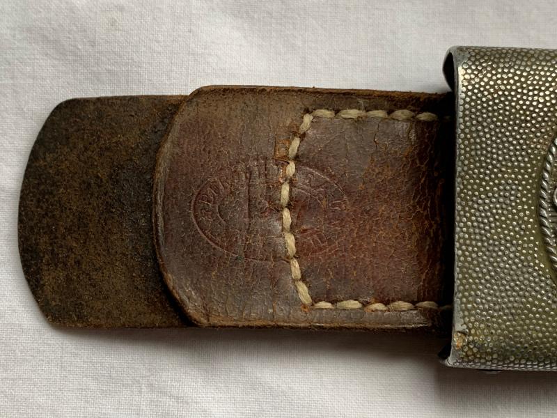 Very nice WH (Heer) Aluminium Belt Buckle which comes with the original leather tab. It is nicely dated 1937 and maker marked 'Berg & Nolte A.G.'
