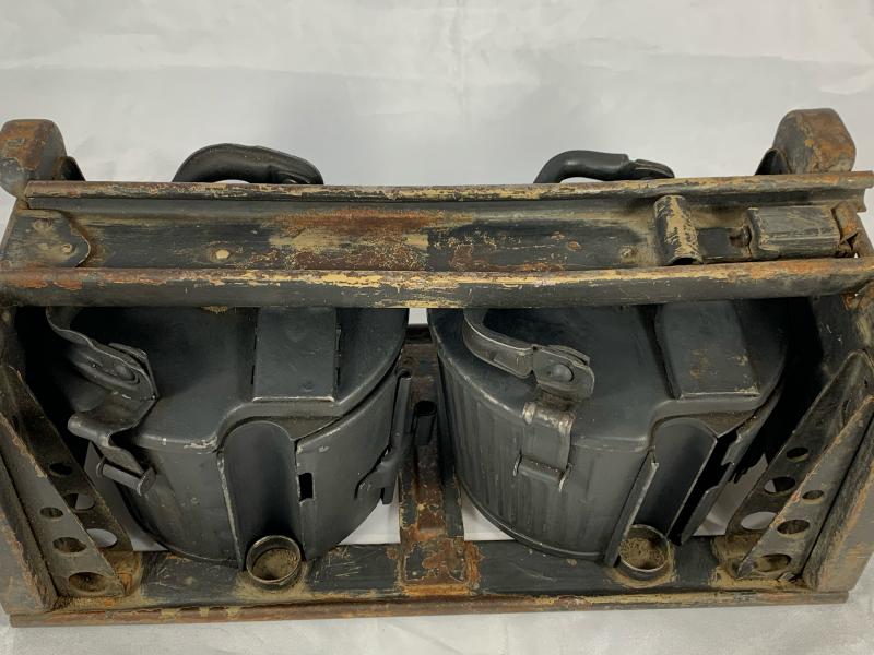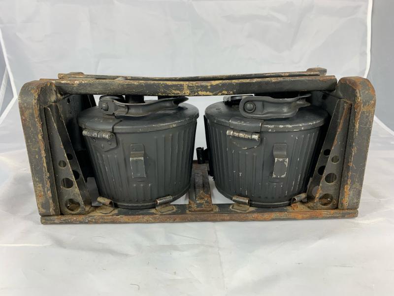 In very nice condition a MG 34/42 Carrier with 2 Drums, each drum can hold 50 rounds, both are nicely 'wc32' and 'h.q.u 43', also the carrier frame is nicely factory code marked and dated 'wc43'.