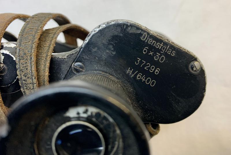 In very good condition a German WW2 Binoculars 'Dienstglas' 6x30, which is nicely factory code marked 'fvx'.