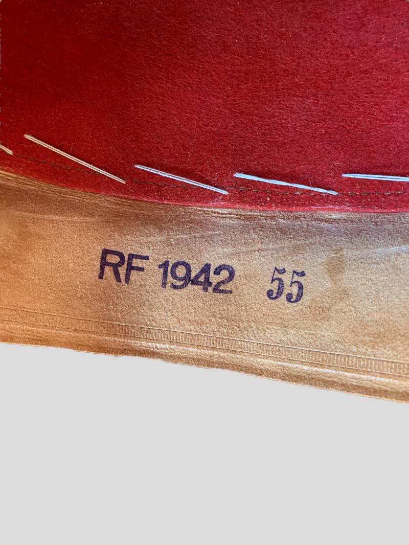 The leather sweatband is nicely size marked '55' and dated '1942'.