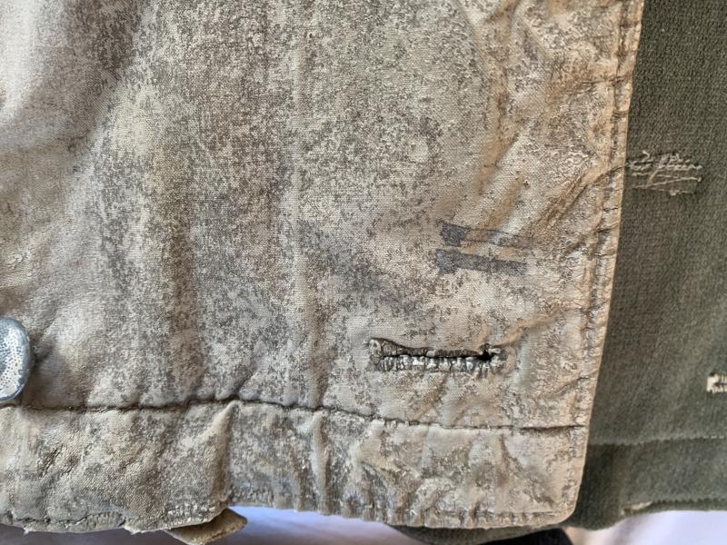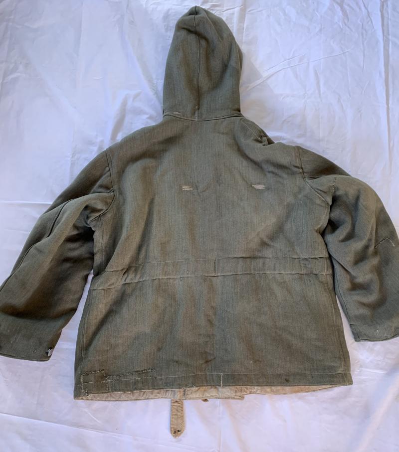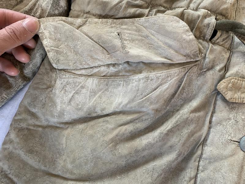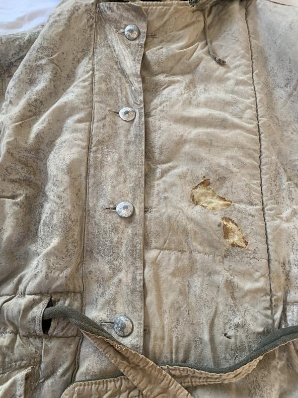 The parka is clearly visible marked and comes with an extra white-wash, also the belt is still present.