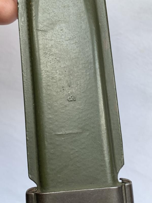 In used condition an U.S. M3 Combat knife in M8 Scabbard, the scabbard is nicely marked ‘US M8 B.M.C.O’, the combat knife is unfortunately not marked anymore, they have cut off the maker.
