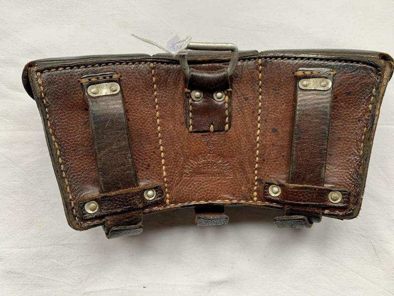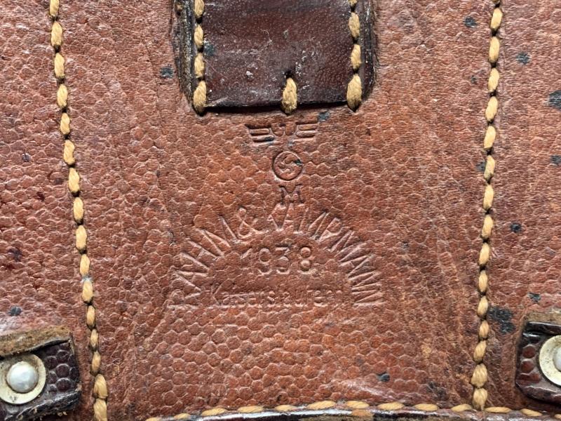 In nice used condition a Kriegsmarine K98 Leather Ammo Pouch which is nicely dated 1938 and maker marked 'Rahm & Kampmann', unfortunately the inner frame is missing, shown on the pictures.