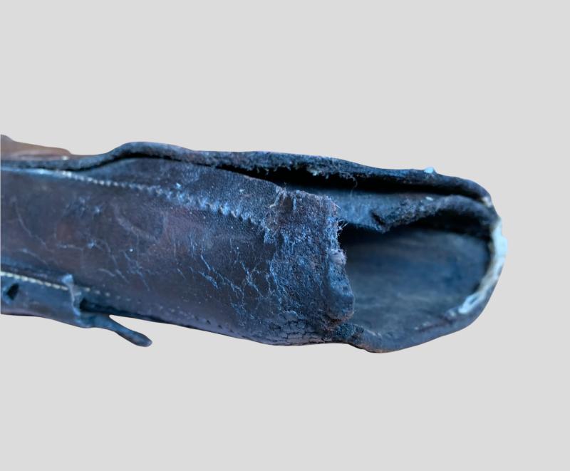 This example is nicely maker marked and dated, a few leather parts are still supple, the other parts are hard but not rotten!