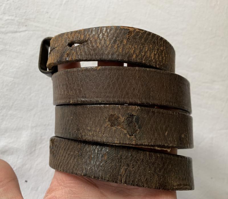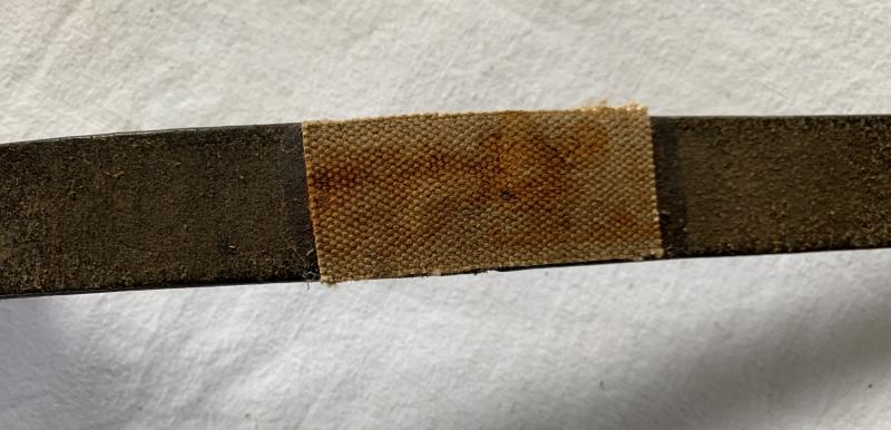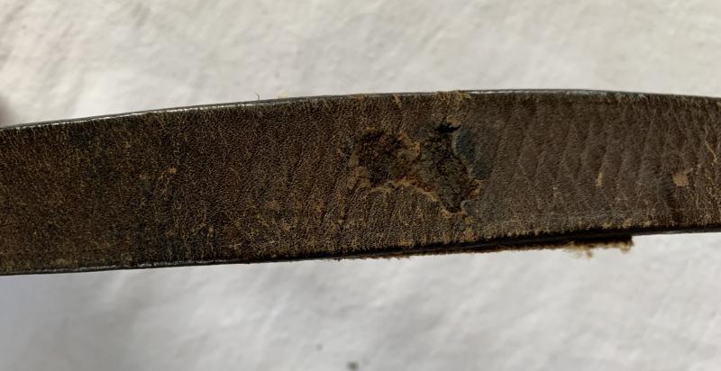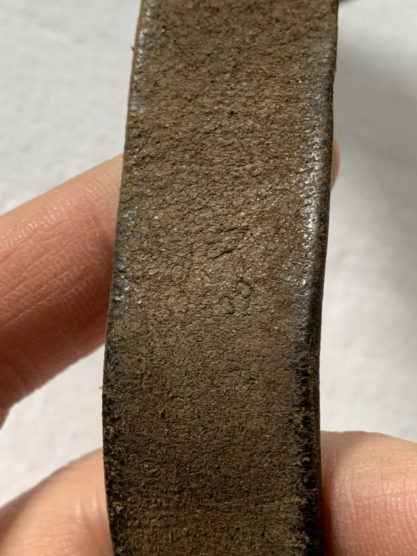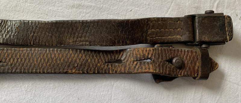 In used condition a K98 Rifle Leather Sling, this example is slightly WaA marked and maker marked. Probably it has a war time repair shown on the pictures, the leather is still flexible.