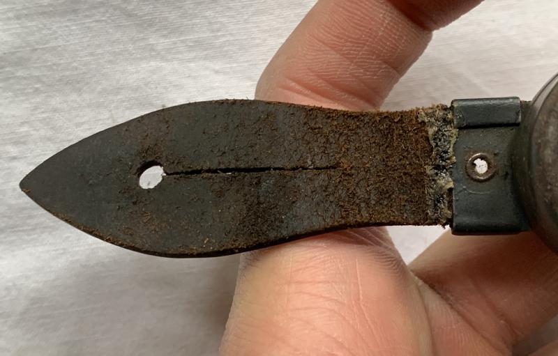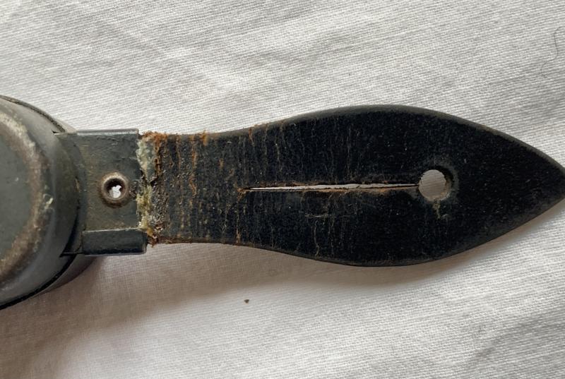 In nice condition a German WW2 Flashlight made by Philips, this example retains more then 80% of its original field-grey paint. Leather button flap has a gluedrop against the dehydration.