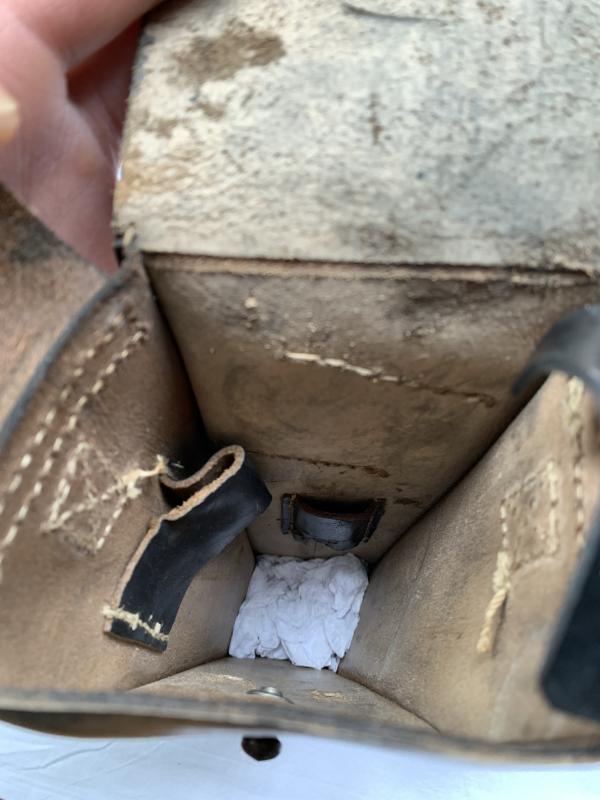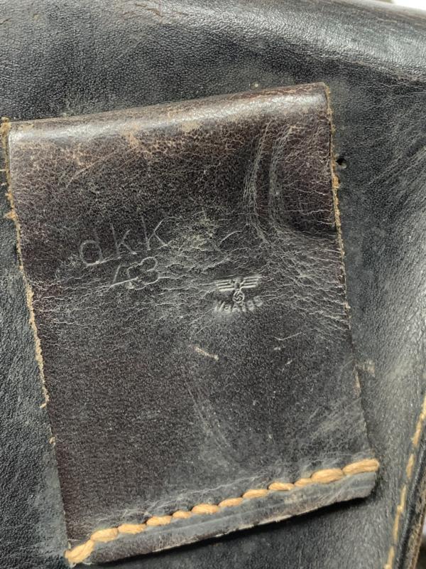 In very nice condition a K98 Rifle Grenade Launcher Leather Pouch, which is nicely factory code marked 'dkk' and dated '1943’ also WaA stamped.