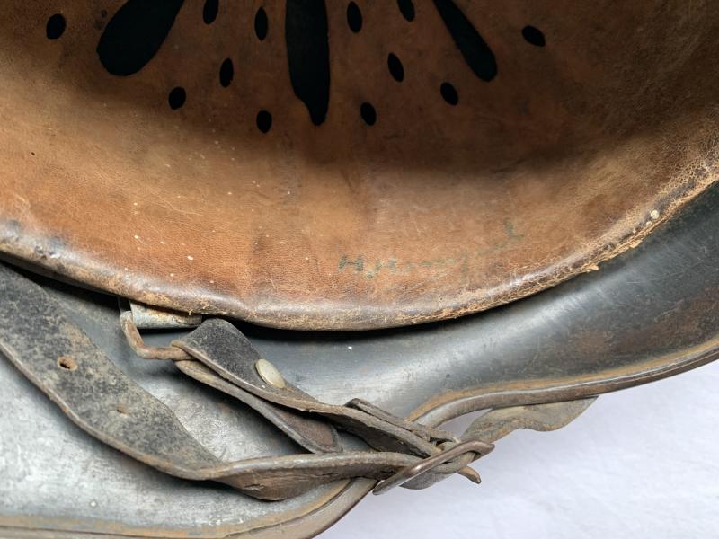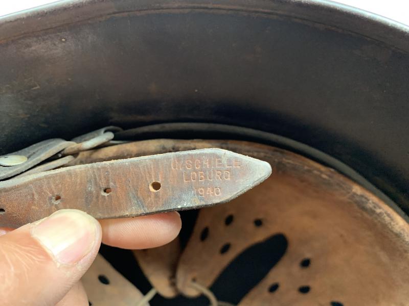 Its marked 'ET64' and comes with the original liner and leather chin strap which is also nicely marked and dated 1940.