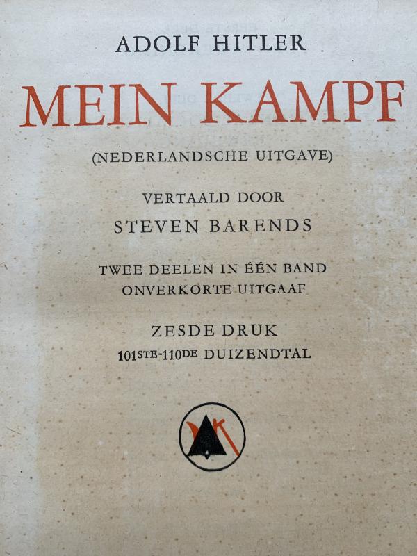 Very nice and rare this Red Adolf Hitler's 'Mein Kampf' in Dutch, probably this is a late-war edition because of its red letters, all pages are intact, no damages.