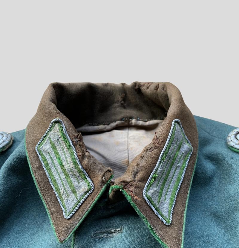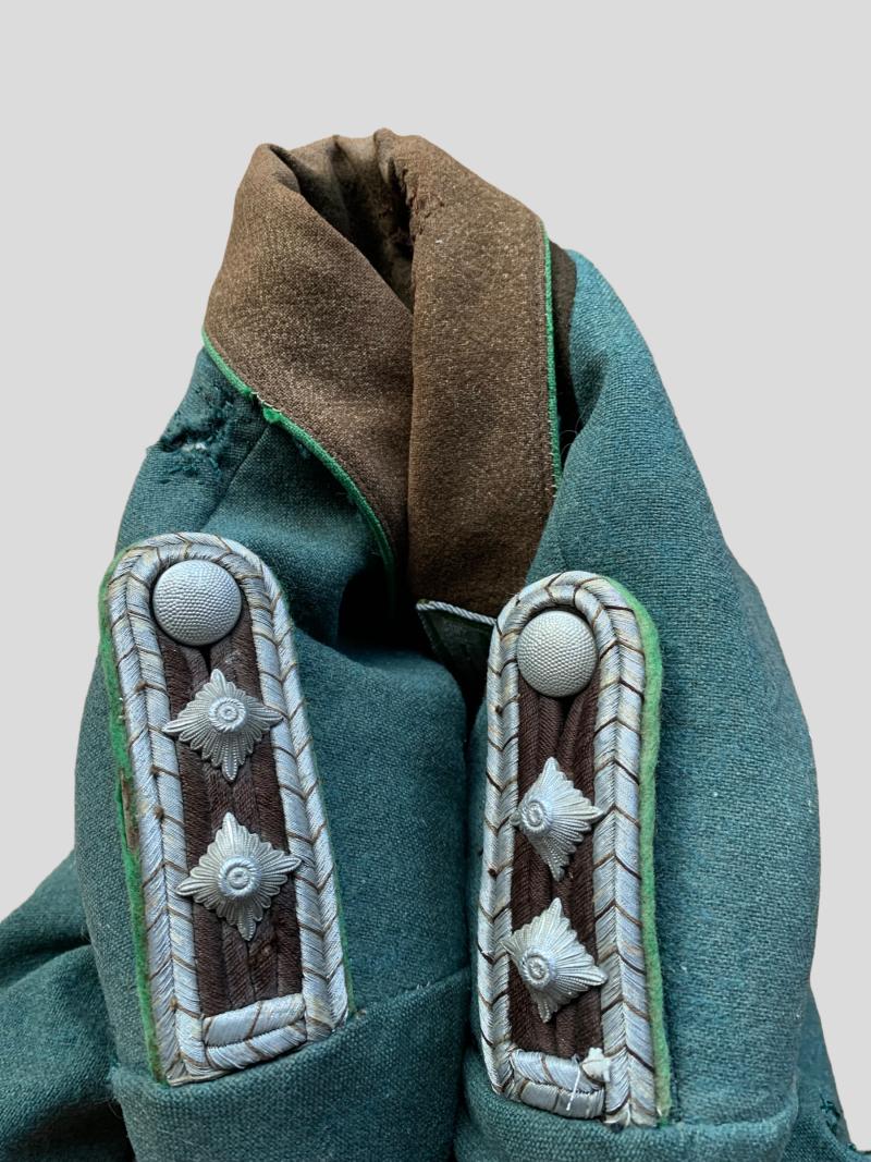 In nice worn condition a German Police 'Schutzpolizei' Service Tunic. The tunic has a few moth damages which are shown on the pictures, nice for on a mannequin or display.