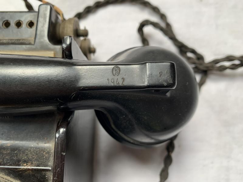In very good condition a German WW2 Bakelite Desk Rotary Telephone which is nicely maker marked (Friedrich Reiner Munchen) and dated 1937. Very nice for display!