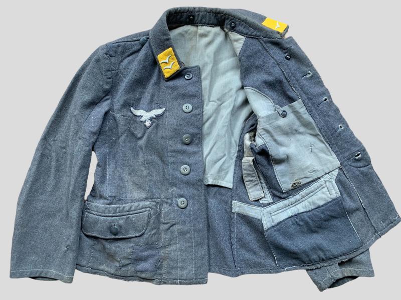 In very used condition a Luftwaffe 'Fliegerbluse' Flight Jacket. Its nicely marked inside and has a few damages shown on the pictures.
