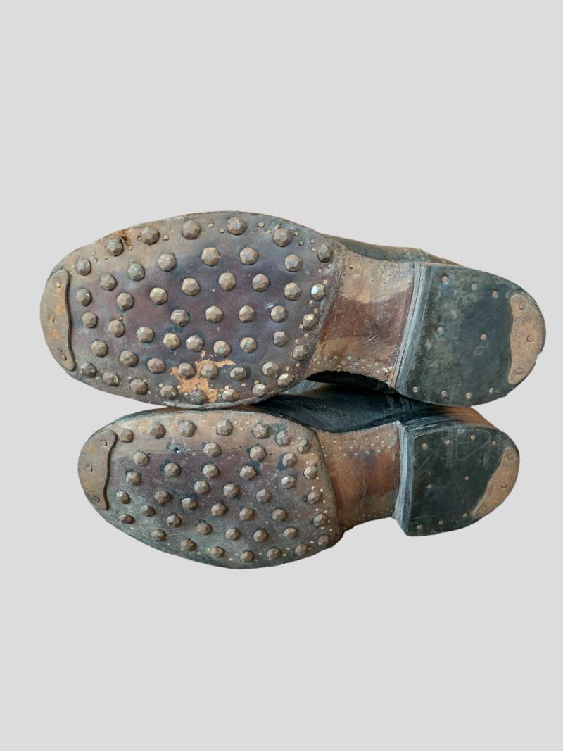 In really good condition a pair of German WWII Jackboots/Marchingboots (Marschstiefel) comes with the original sole and hobnails. Both boots has a small damage shown on the pictures.