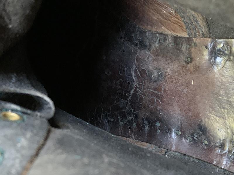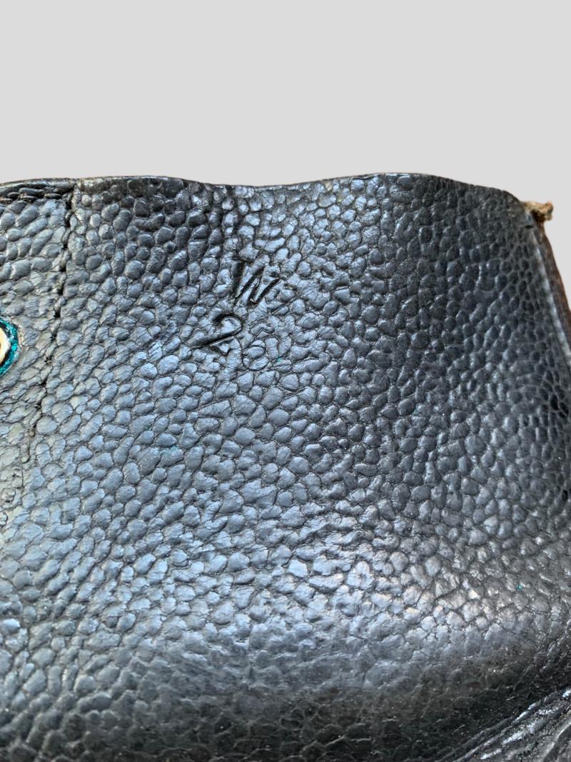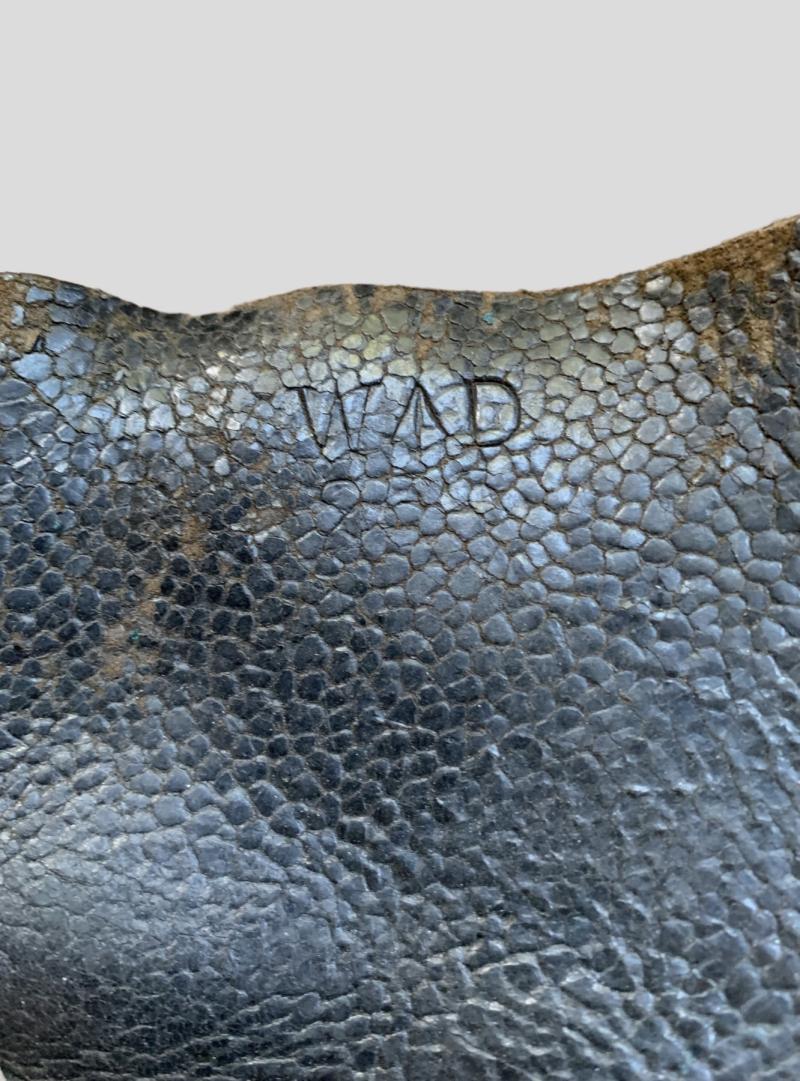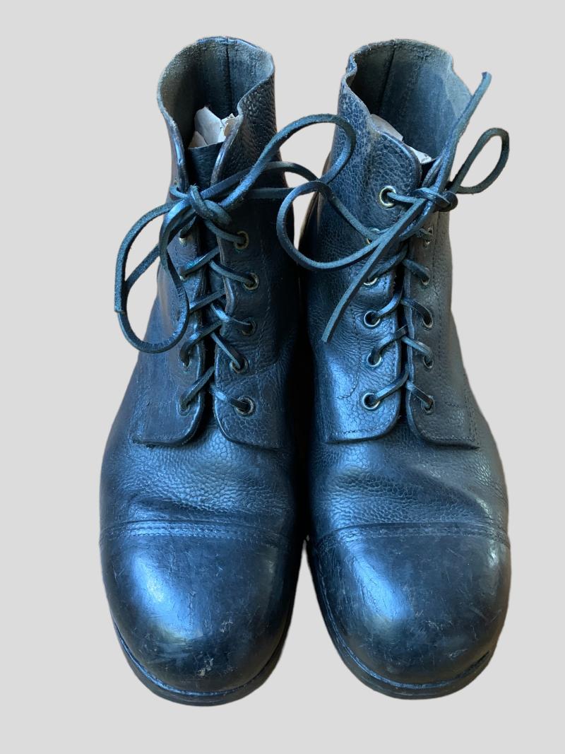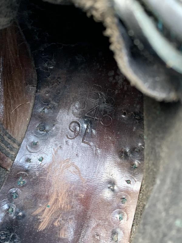 In nice used condition a pair of British Ammo Boots which are nicely dated 1943, as well the WD and broad-arrow stamp are still visible. Nice size for on your mannequin.