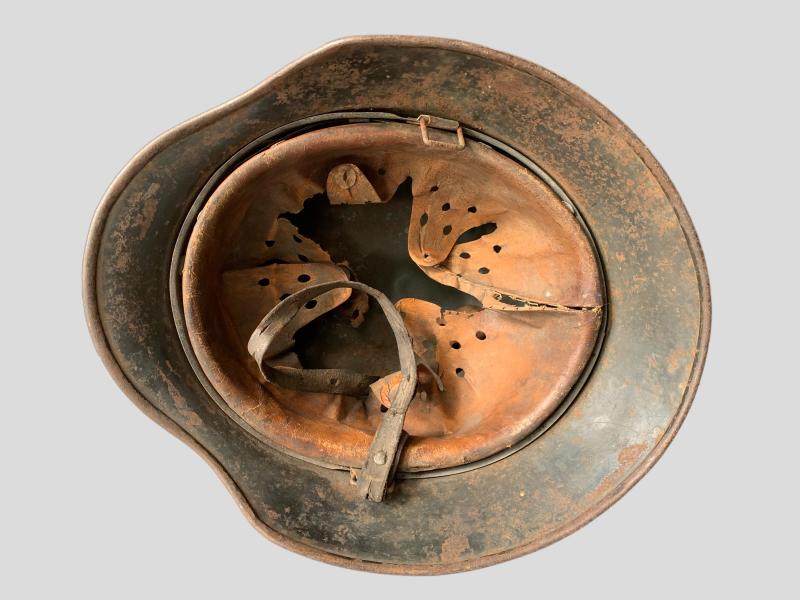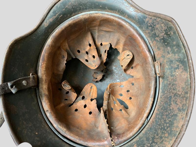 In nice worn condition a WH M40 Single Decal Helmet which retains more then 80% of its original paint, as well the decal is in 60% condition.
