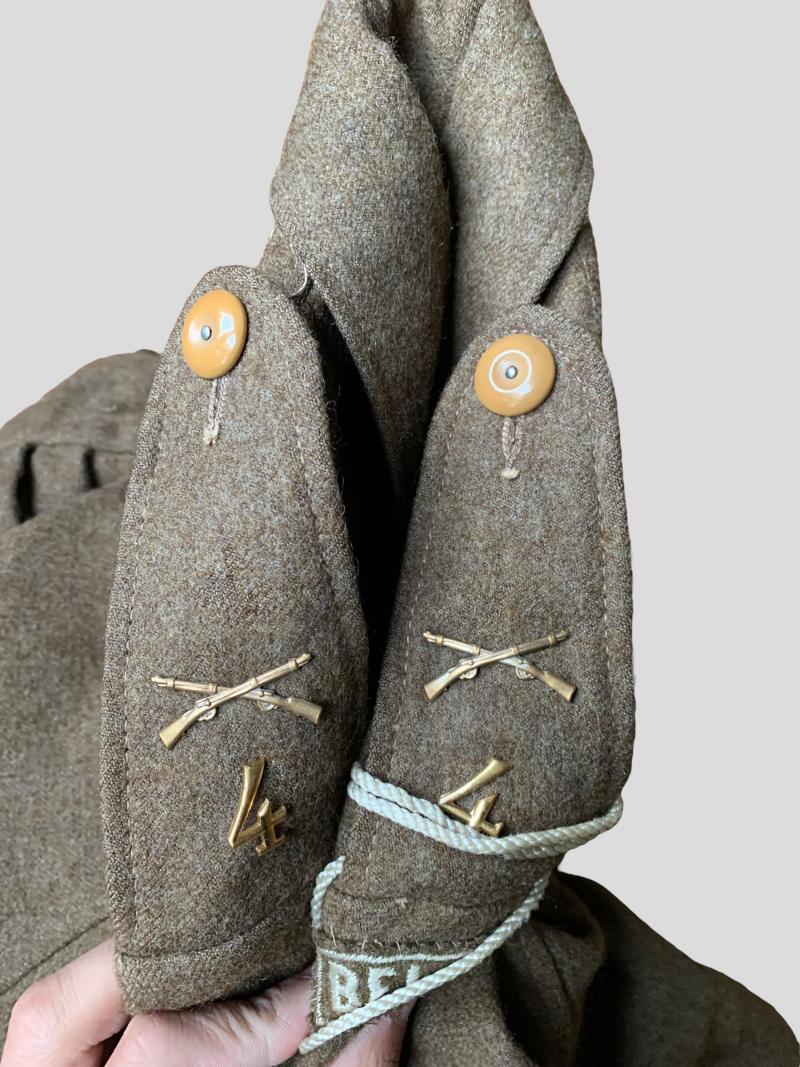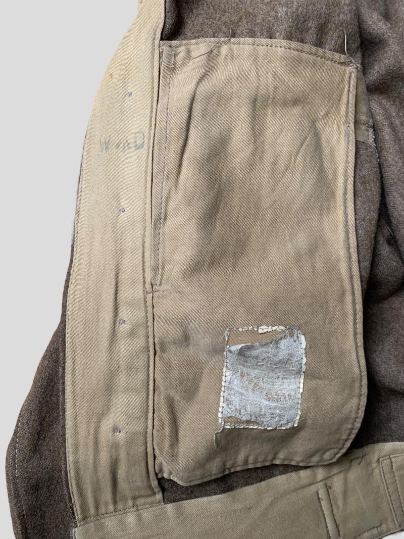 In nice condition a British Pattern 37 Battle Dress, it comes with the original WD stamp and label which is unreadable.
