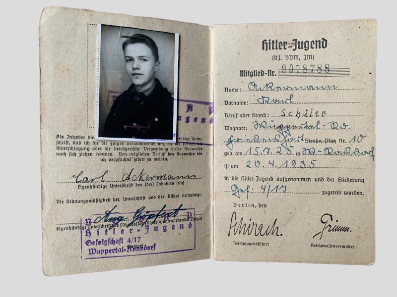 In good condition a Hitler Youth 'Hitler Jugend' Membership Card 'Mitgleids Ausweis'.