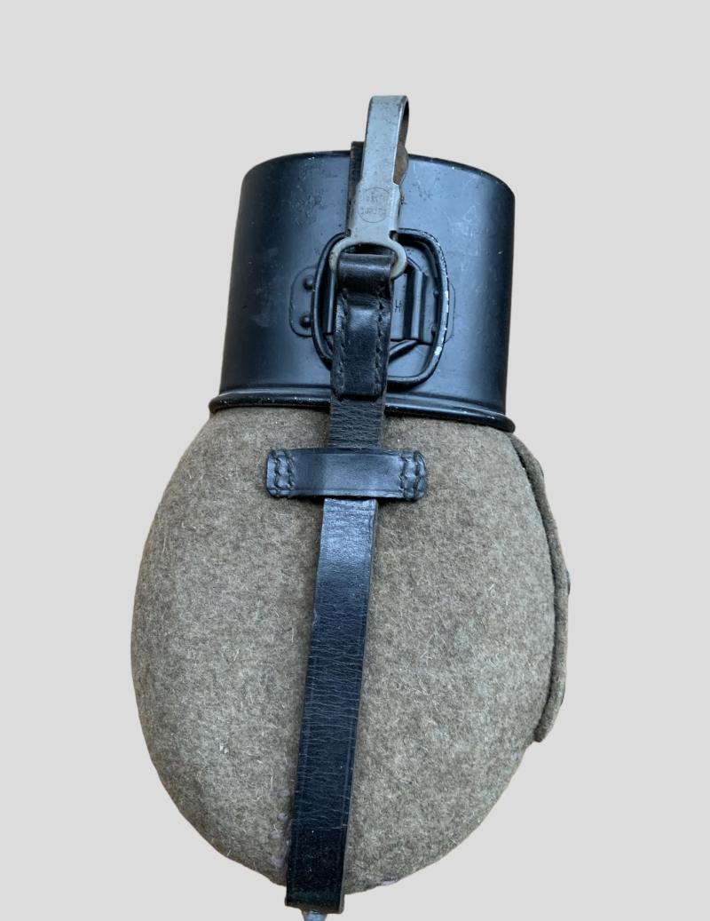 In really top condition a WH (HEER) Canteen and Cup. The canteen and cup as well the leather strap are nicely factory code marked 'HWSD' and dated 1940. Really nice untouched example for sure!