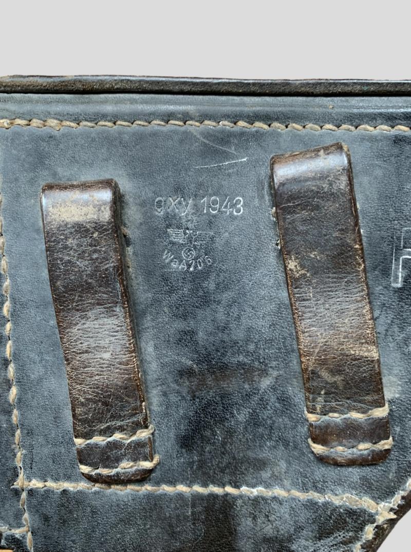 In nice untouched condition a Leather P38 Holster which is nicely factory code marked and WaA stamped.