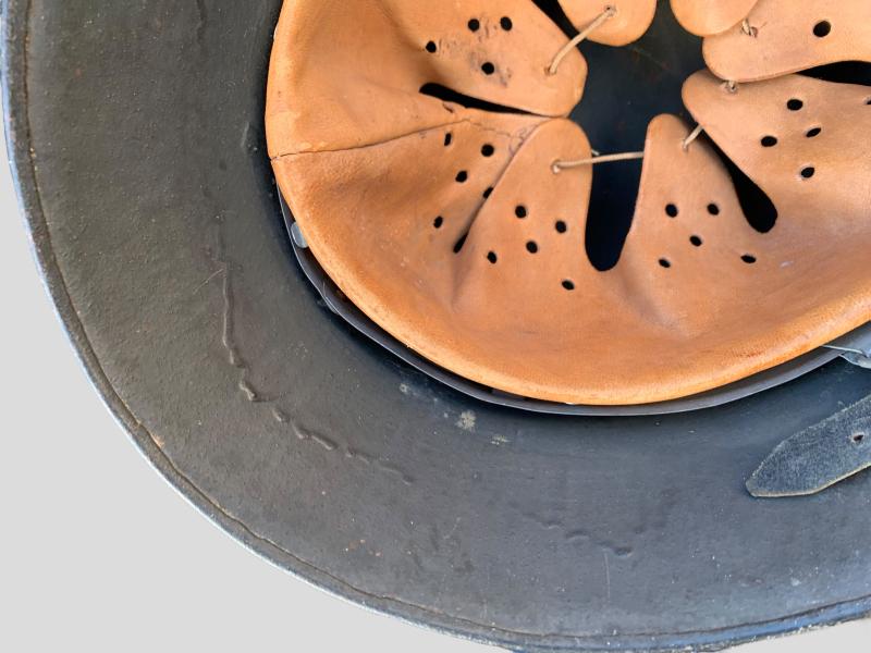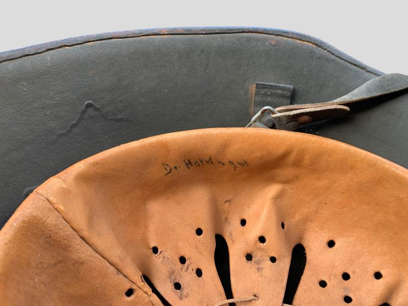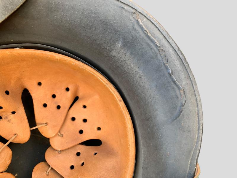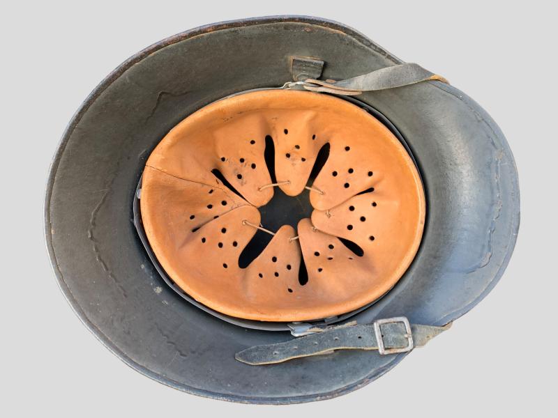 Stunning German WWII Model 17 Transitional Austrian Helmet which retains more then 95% of it’s original Field-grey paint and comes with the original leather liner and chin strap.