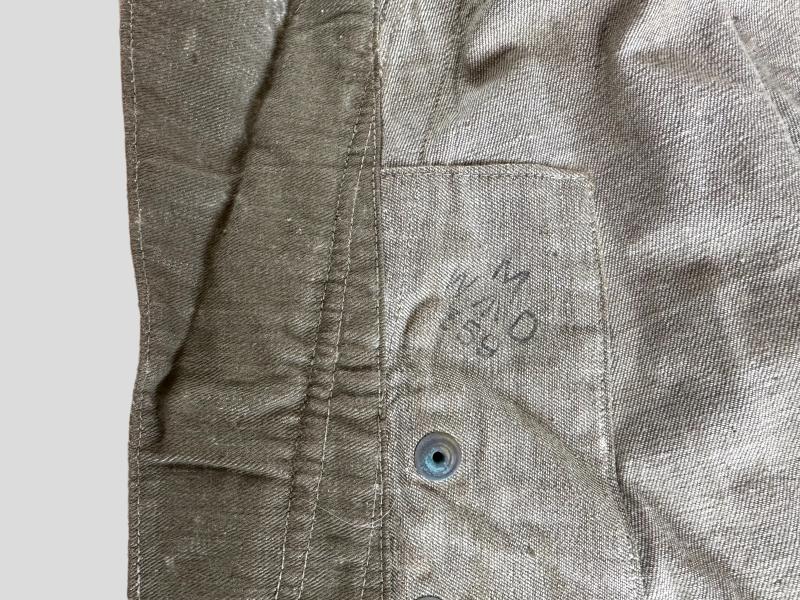 In really top condition a British Airbrone Oversmock (pattern 1942) which comes with the original fitted label, clearly maker marked and dated 1944, as well the WD stamp is clearly visible.
