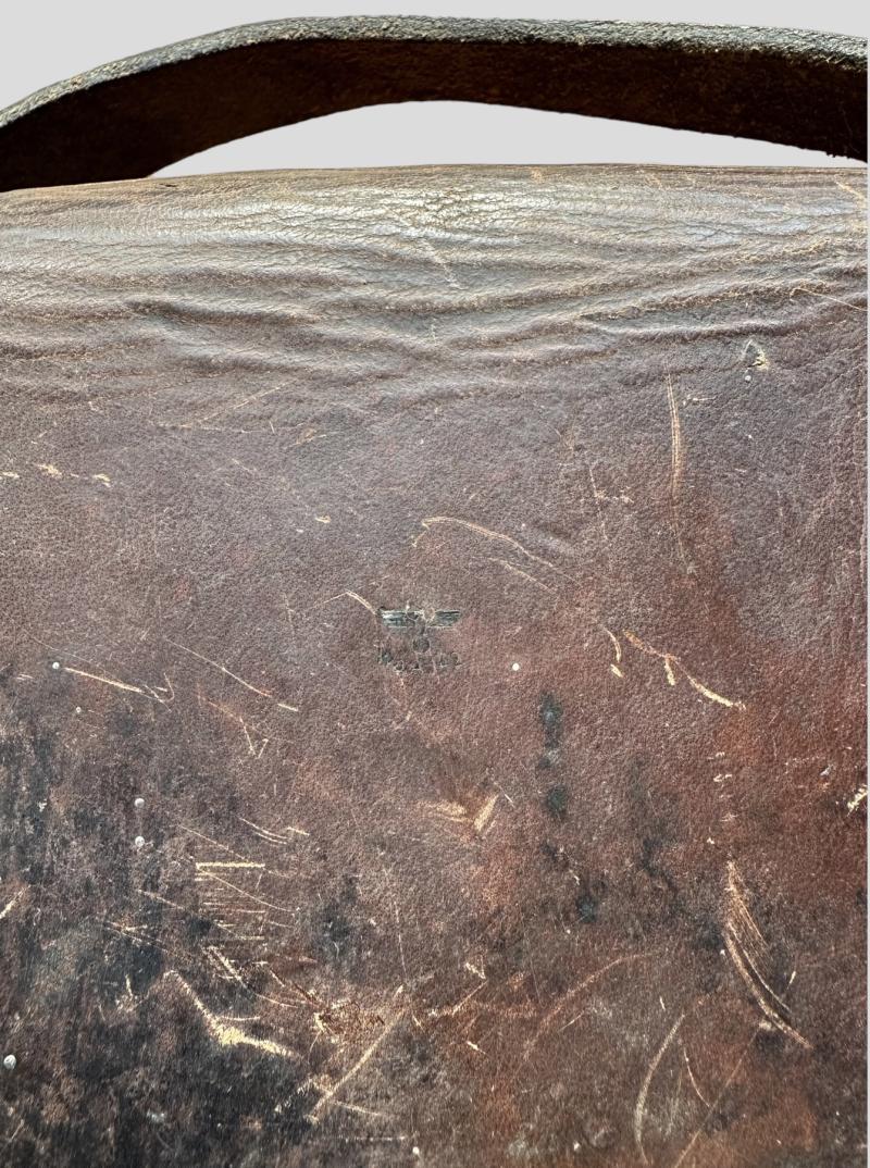 In very good condition a German WWII MG 13 Gunner's pouch made of dark-brown leather construction. The pouch comes with the original carrying sling, as well the WaA stamp is still visible marked.