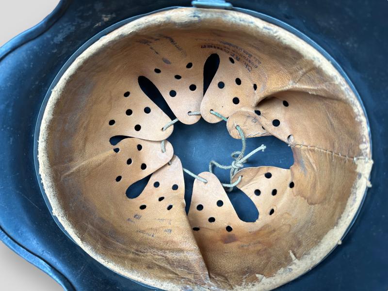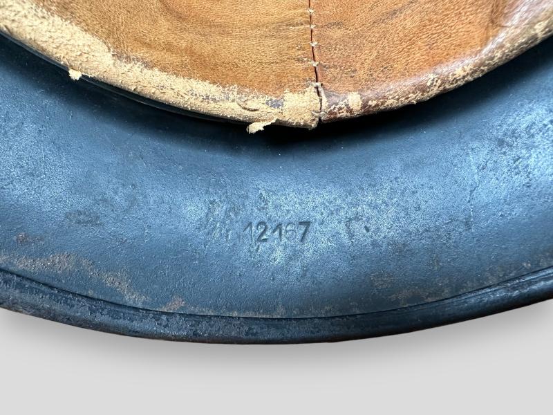 In really good condition a Luftwaffe M40 Single Decal Helmet, it still retains 90% of its original factory paint, clearly factory code marked “SE64” as well the neck stamp is still visible.