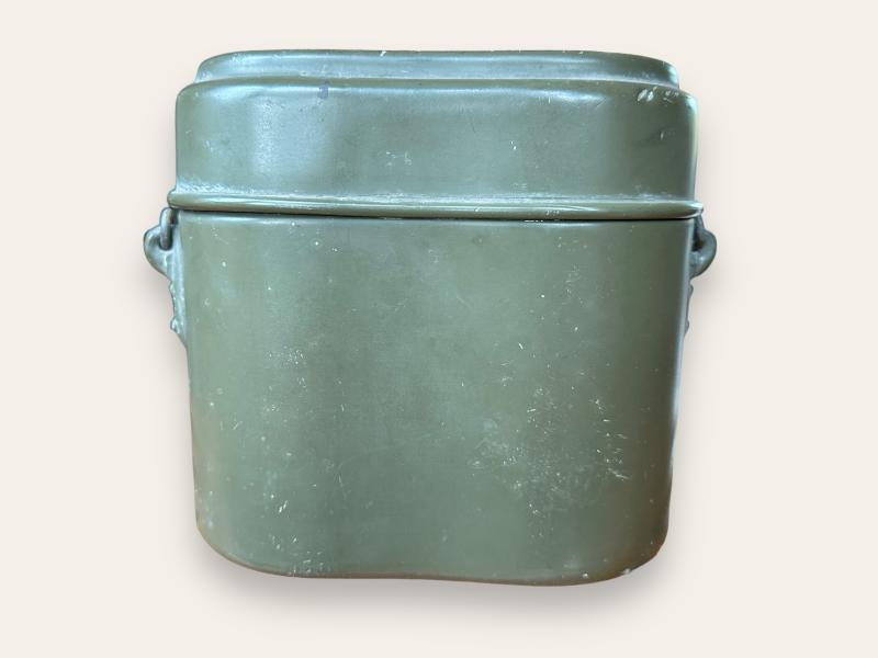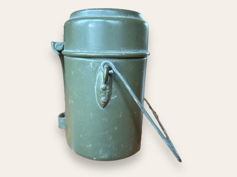 In mint condition a German WWII Messkit which retains 95% of it's original factory paint. Nicely factory code marked VAL39.