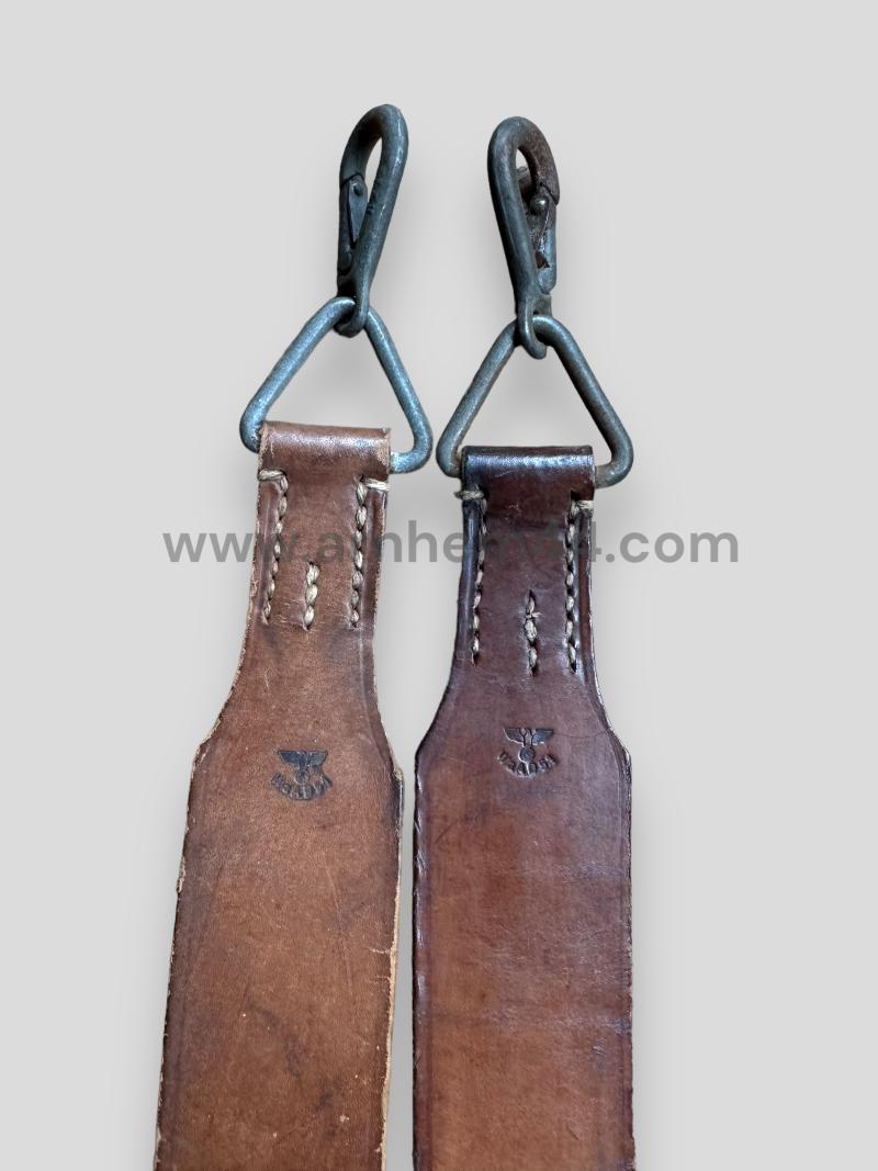 Very nice and hard to find a pair of Lafette MG34/42 carrying straps in natural brown leather construction and WaA marked. Very nice pair of carrying straps which are hard to find!
