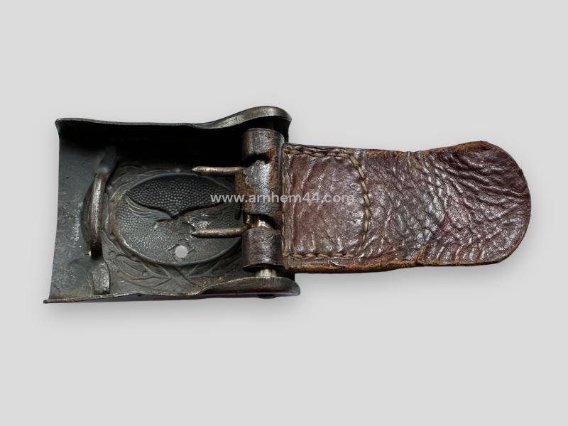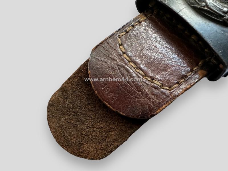 In nice used condition a Luftwaffe Steel Belt Buckle with original leather tab which is nicely maker marked and dated 1941, leather tab has one damage shown in the pictures.