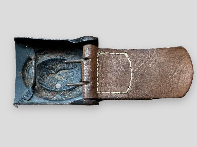 In really nice condition a Luftwaffe Steel Belt Buckle with original leather tab, nicely maker marked 'J.C. Maedicke' and dated '1941'.