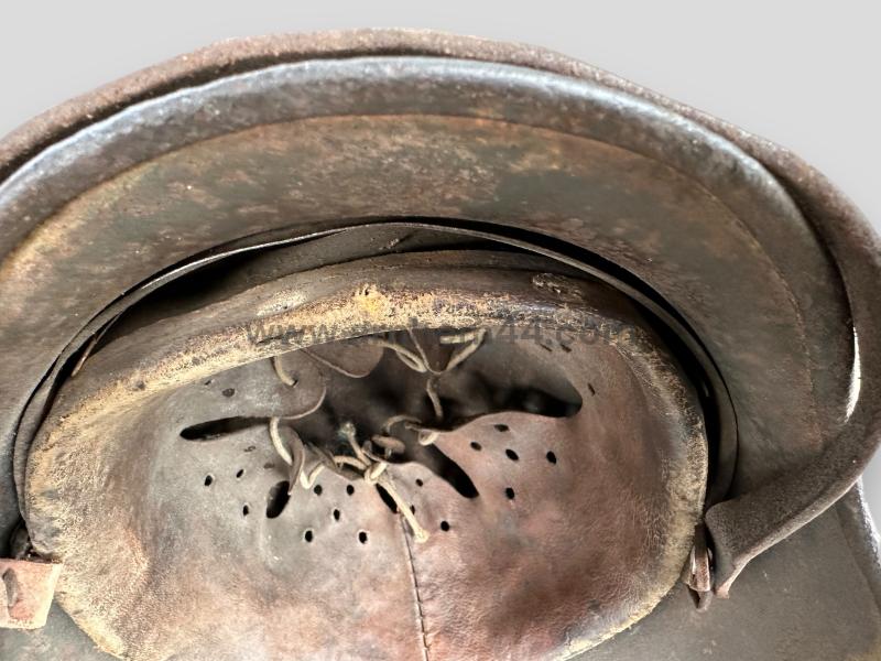 In really nice condition a WH (HEER) M35 Re-Issued Helmet in Field-grey/blue paint, underneath you can still find the 'Winter' camouflage. Nice example for sure!