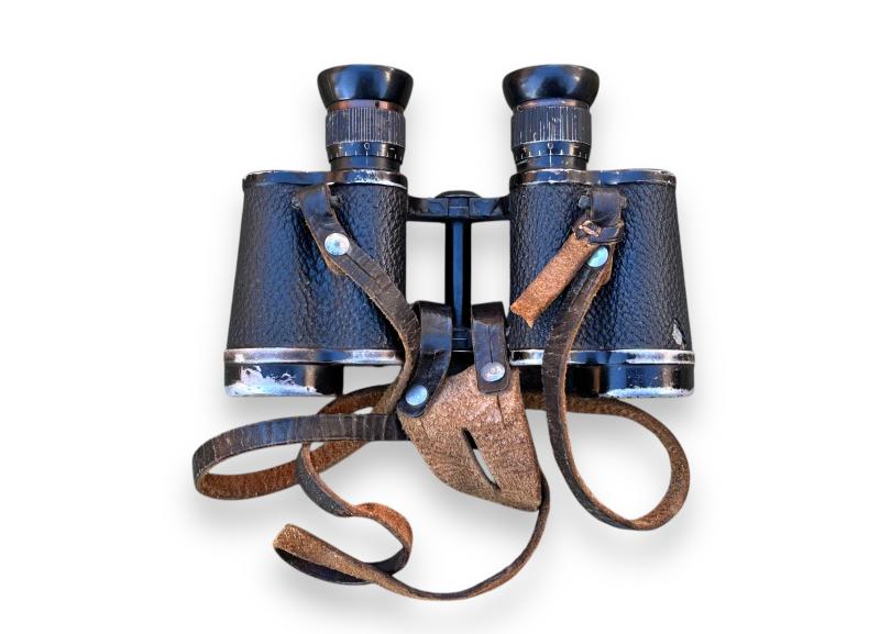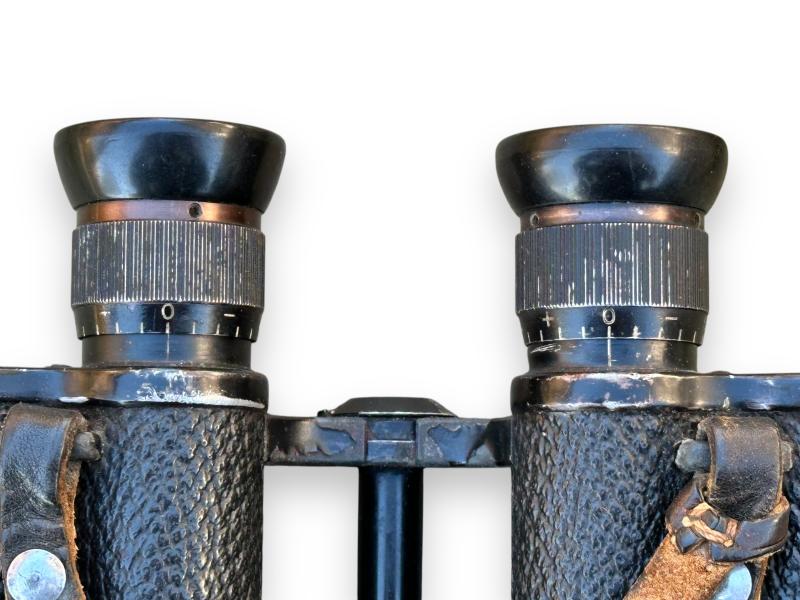 The binoculars shown normal signs of wear and both lenses are fully intact and clear, as well the 'strichplatte' is still visible in the right lens.