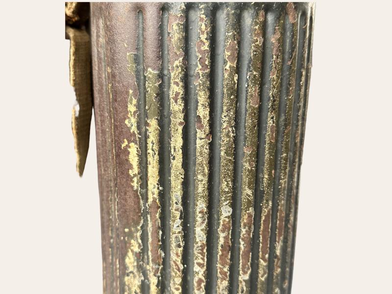 Nice Camouflaged Gasmask Canister and gasmask, it comes with the carrying sling and spare lenses. The canister retains more then 80% of its original camouflage.