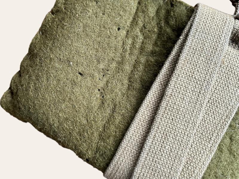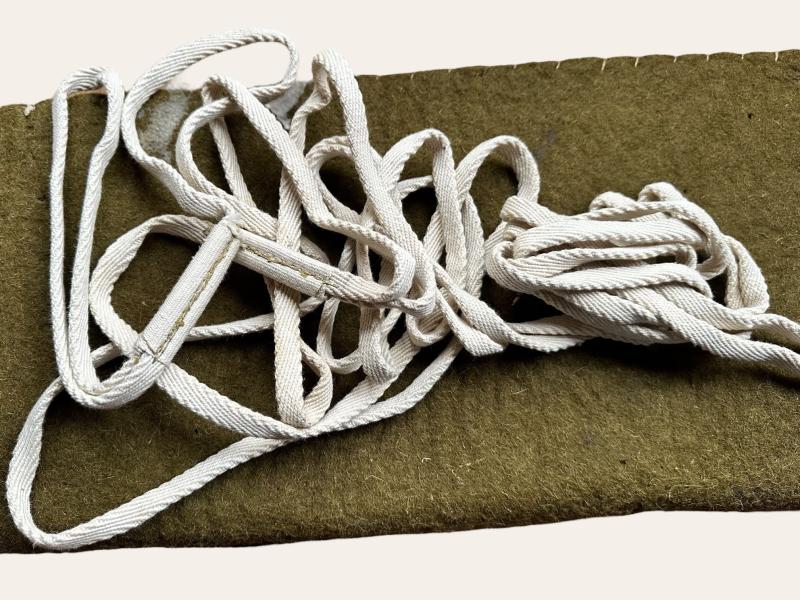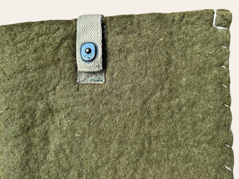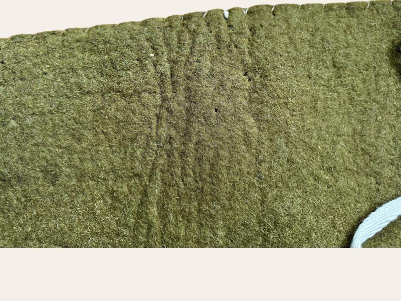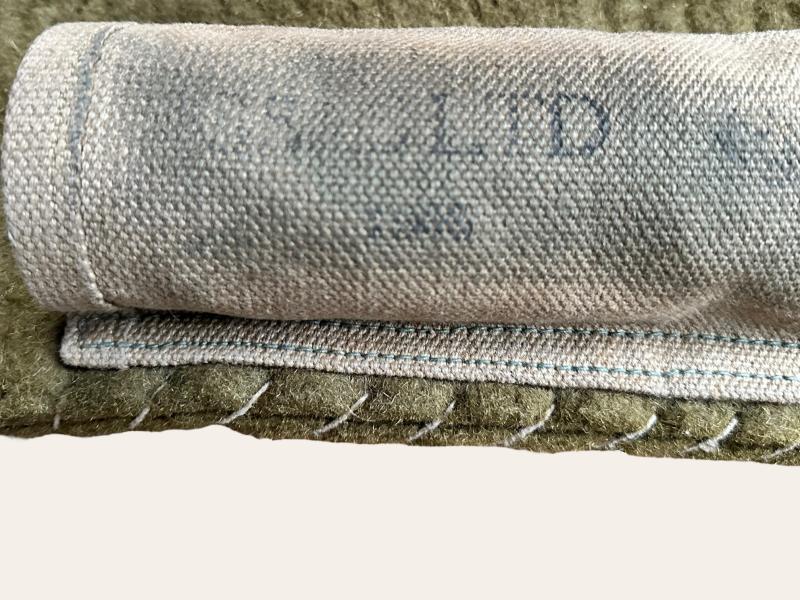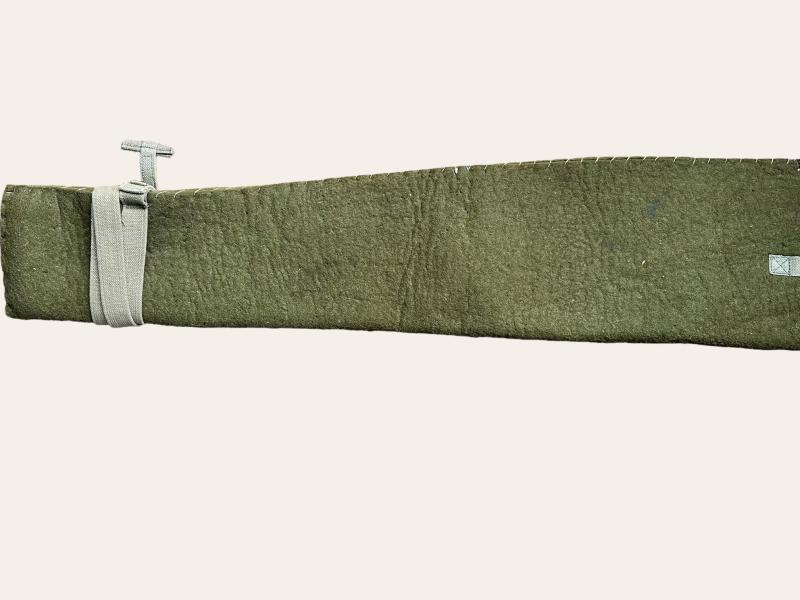 Very attractive British Airborne/Paratrooper Rifle Valise in green felt cloth with webbing straps. Maker marked and dated 1944 and comes with the rope.