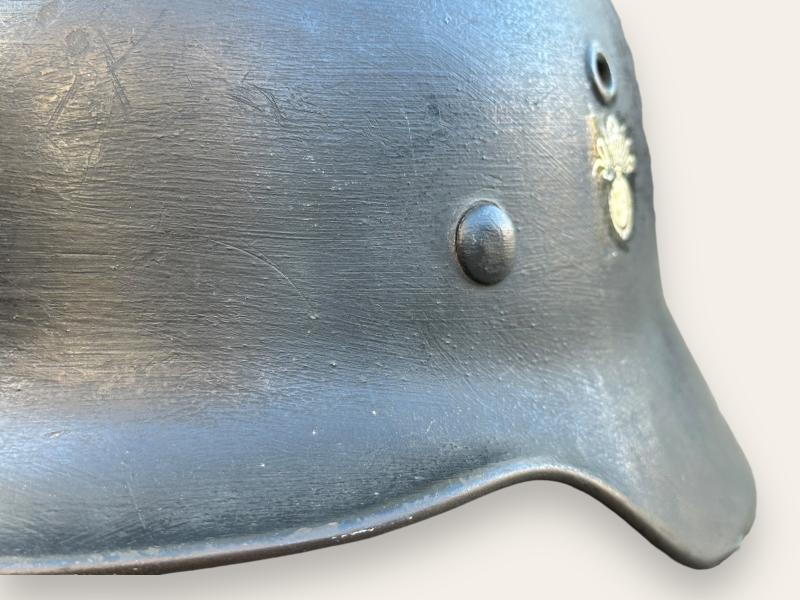 Extremely rare a Landstorm/Schalkhaar Police M40 Helmet marked 'ET66' (Eisenhüttenwerke, Thale, size 66), serial number 1056.