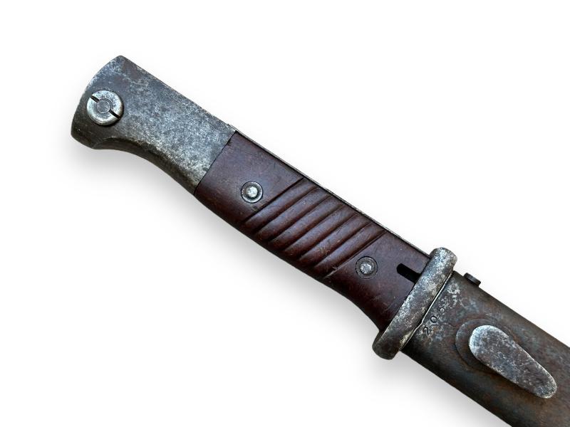 Very RARE K98 Bayonet whith riveted grips, its dated and factory marked '44 asw' the scabbard is marked and dated '1944'. Very nice and rare example!