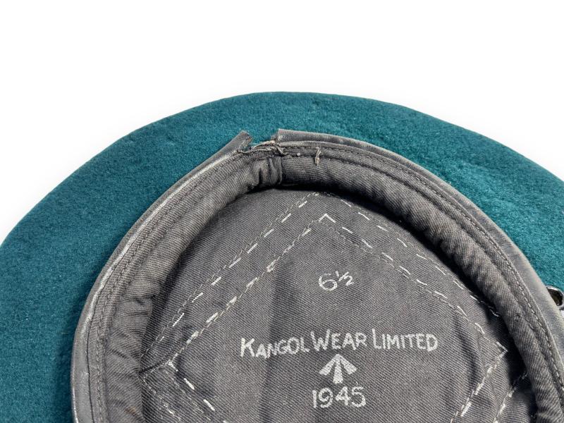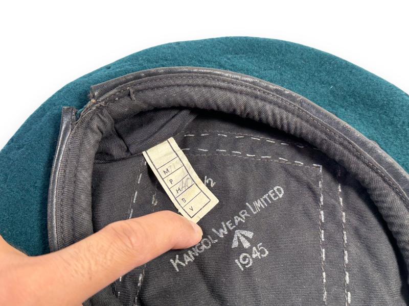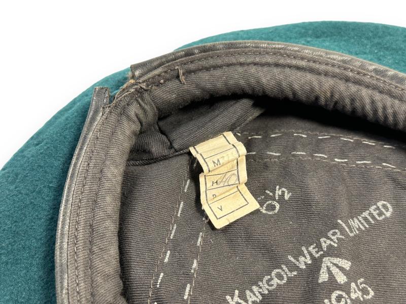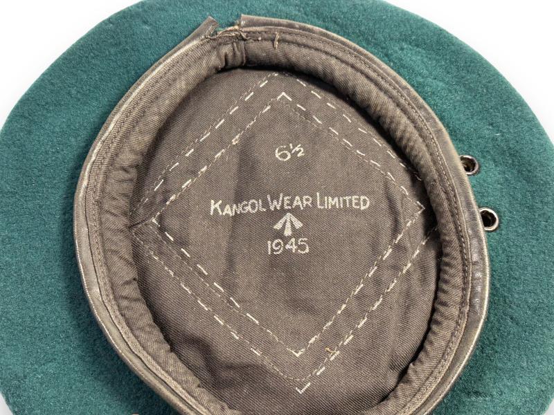 In clearly top condition a Green Commando Beret which is nicely maker marked 'Kangol Wear Limited' and dated 1945. Size stamp 6 1/2 and WD stamp and the letter Z are still visible.